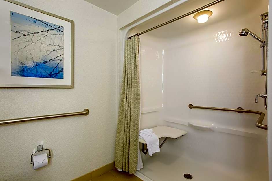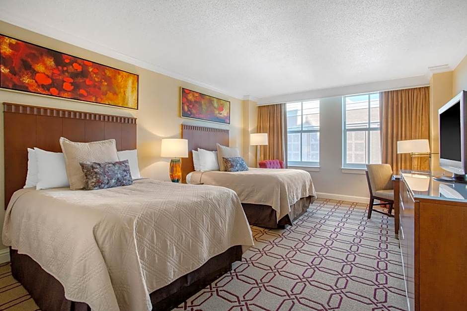 This room features a flat-screen TV, bathroom amenities, and an oversize work desk.